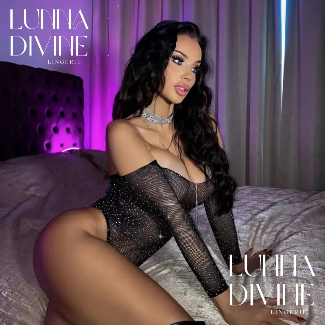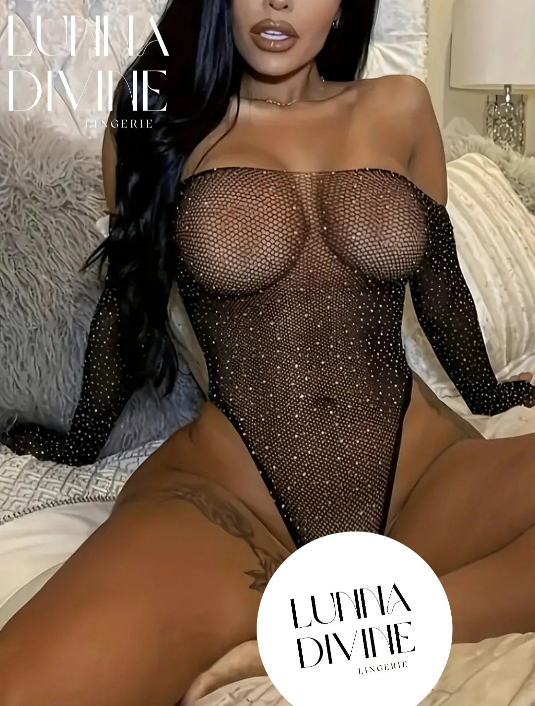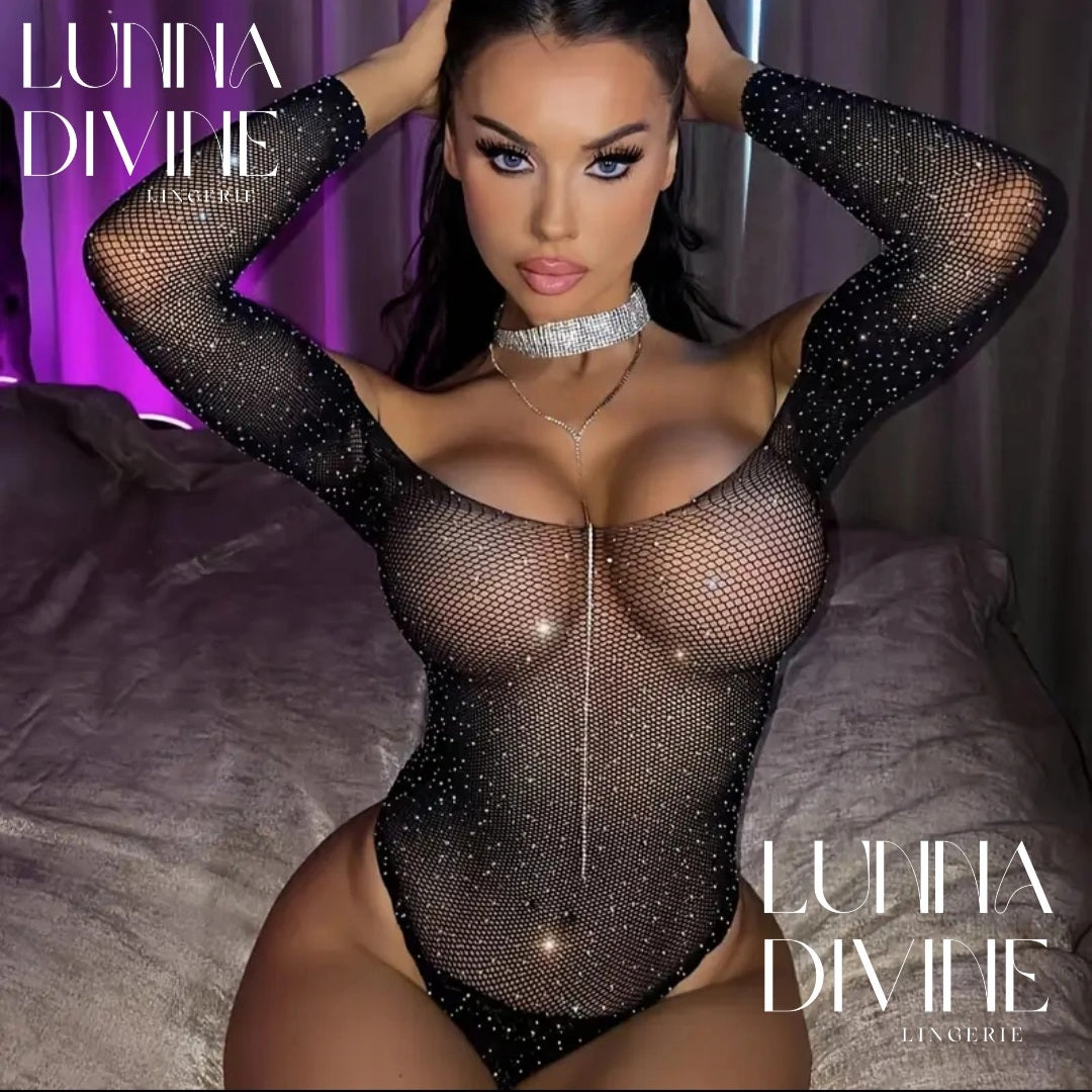 Body sexy en strass, combinaison slim à manches longues et haute élasticité, matériau polyamide élasthanne, couleur unie, tissu tricoté.