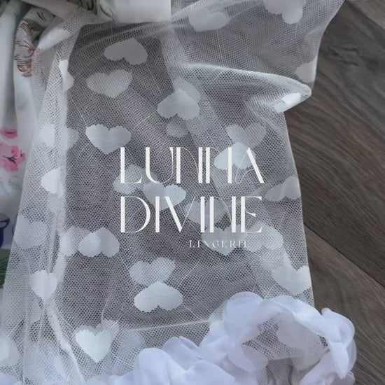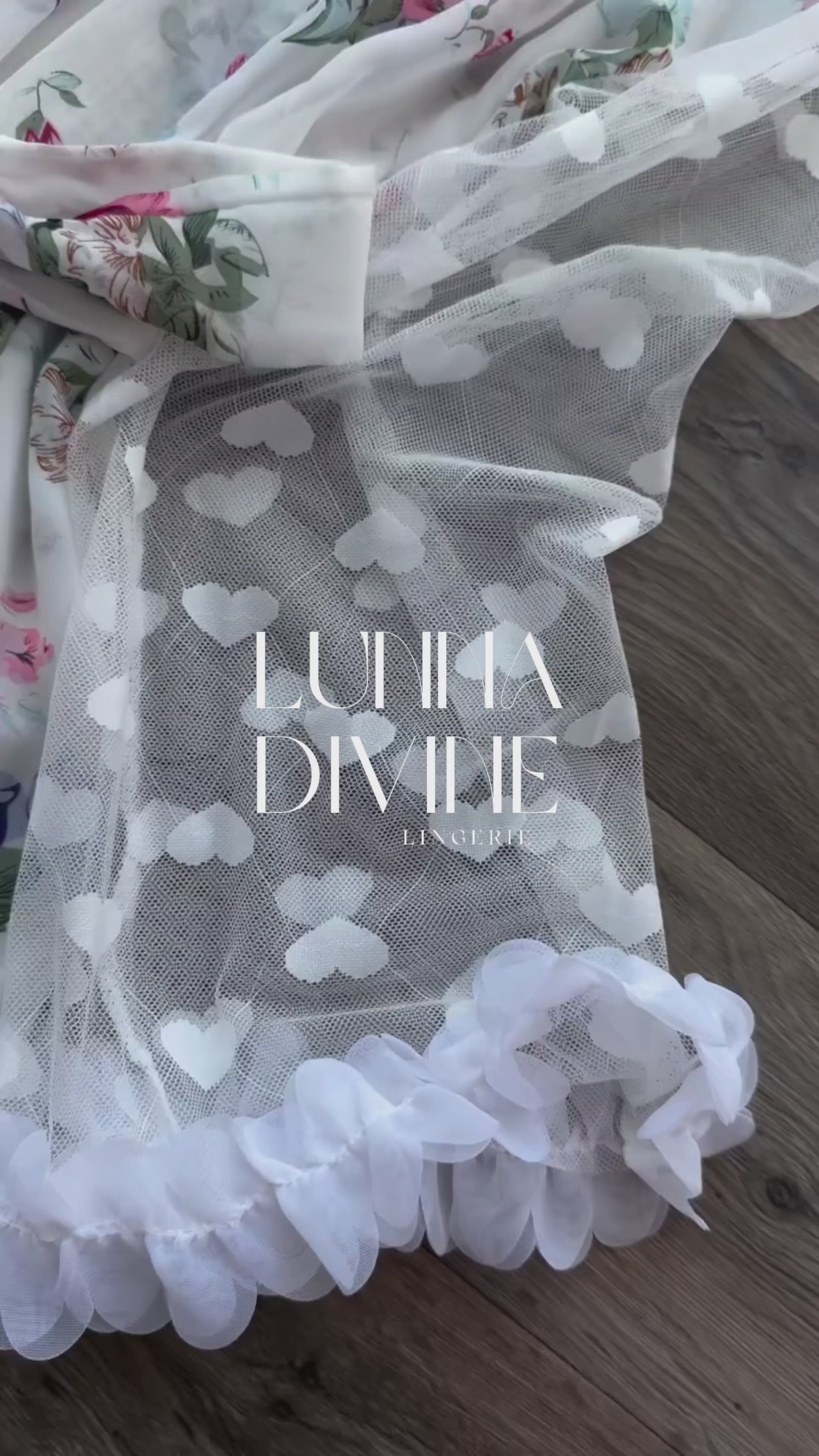 Pyjama Kimono avec pantalon deux pièces tissus foulard imprimé à fleur, manche en tulle dentelle.