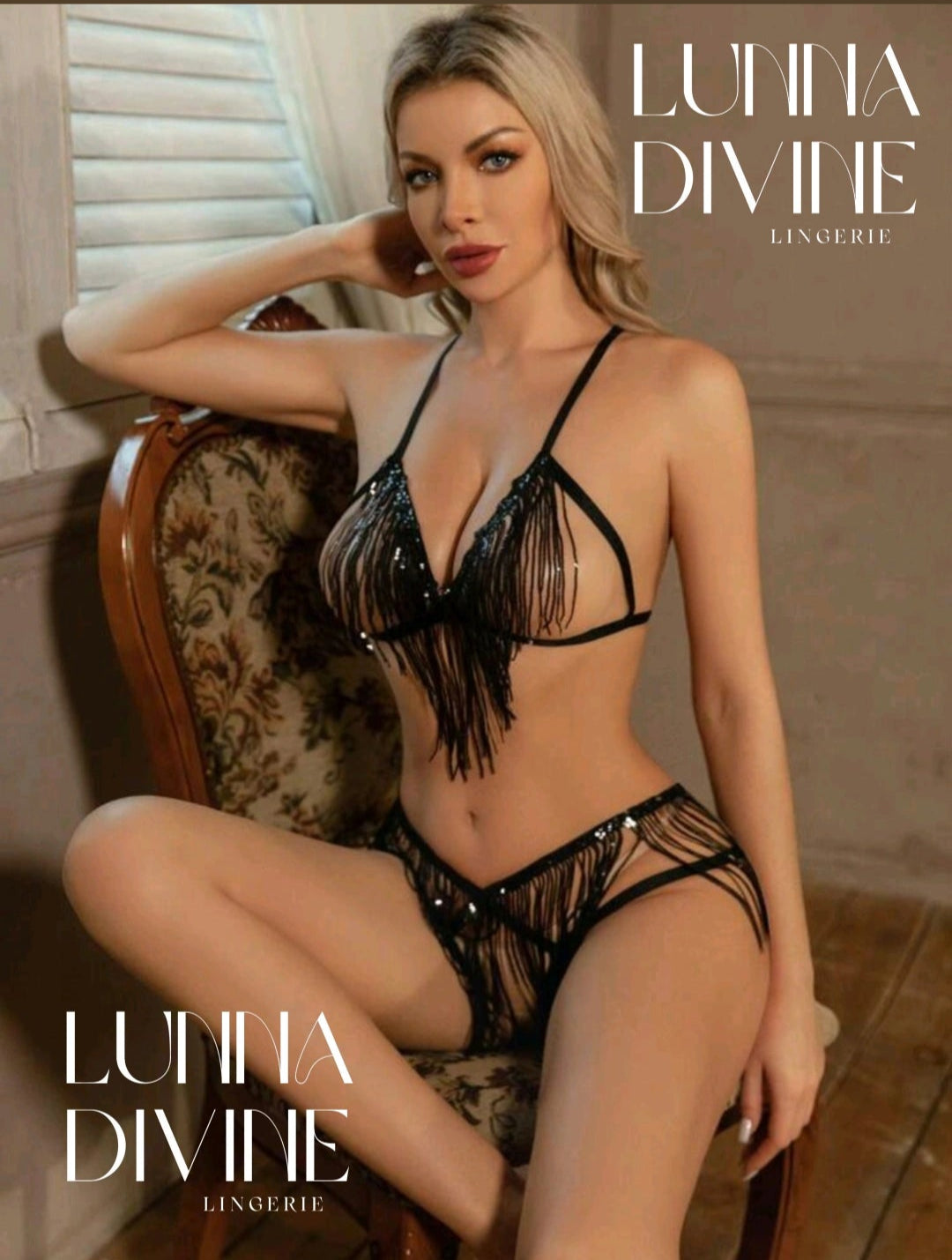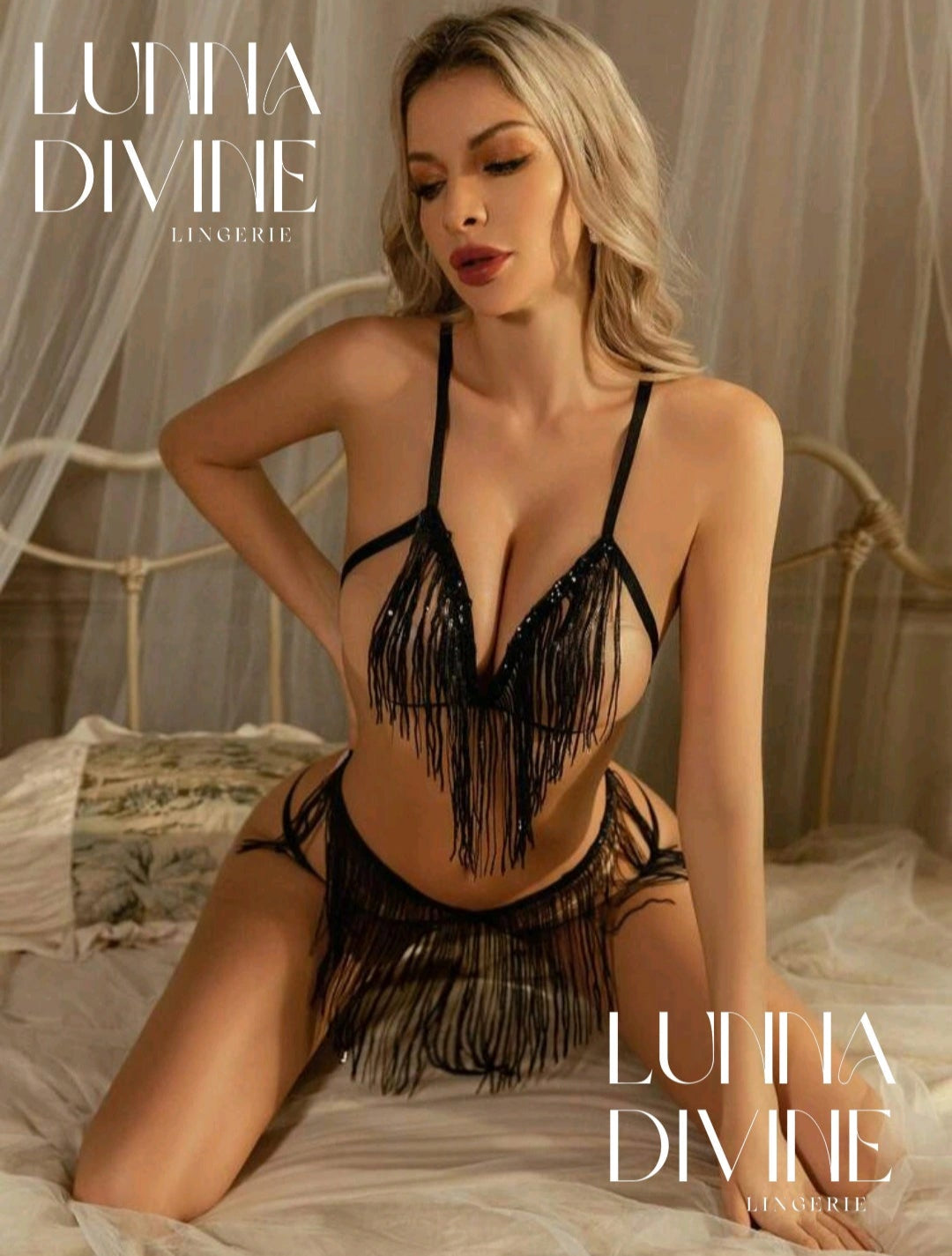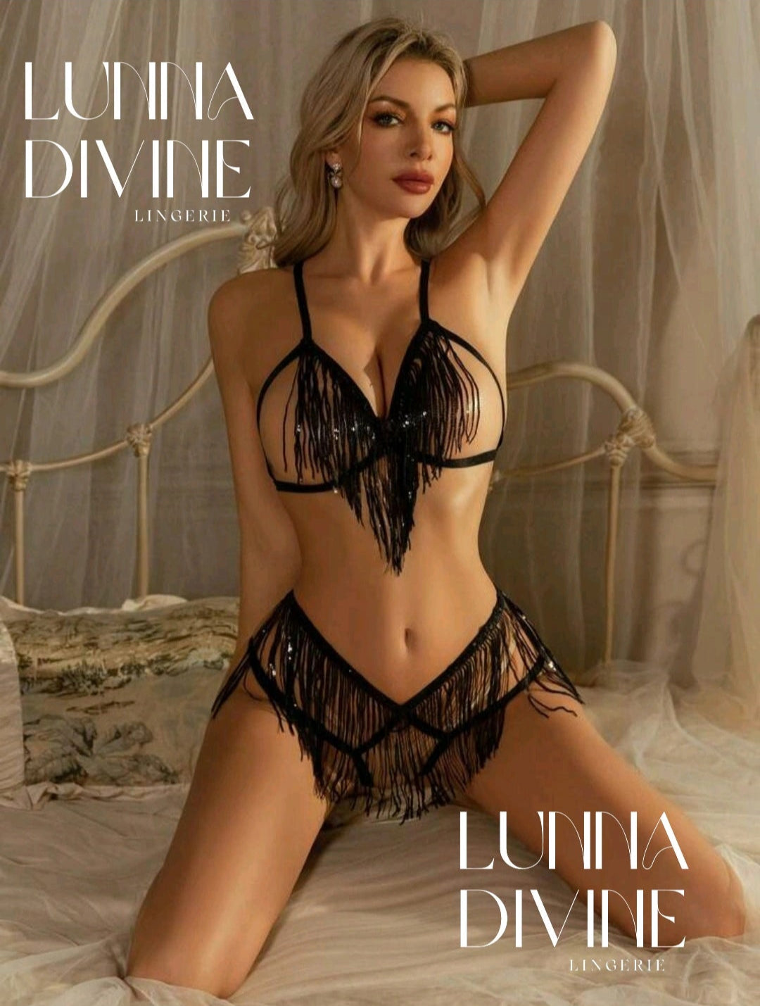 Ensemble de jarretière à franges, 2 pièces : soutien-gorge + sous-vêtements.