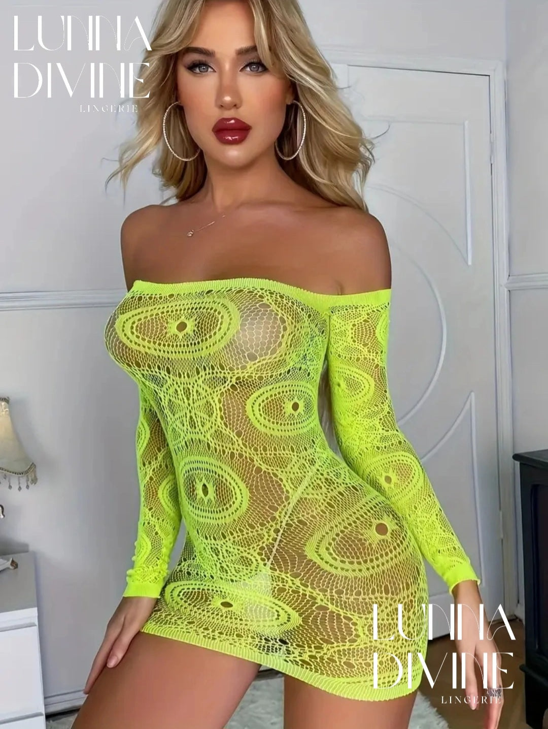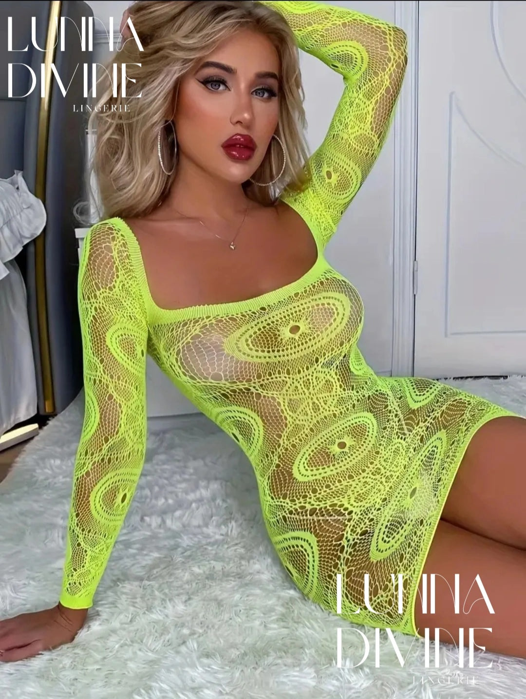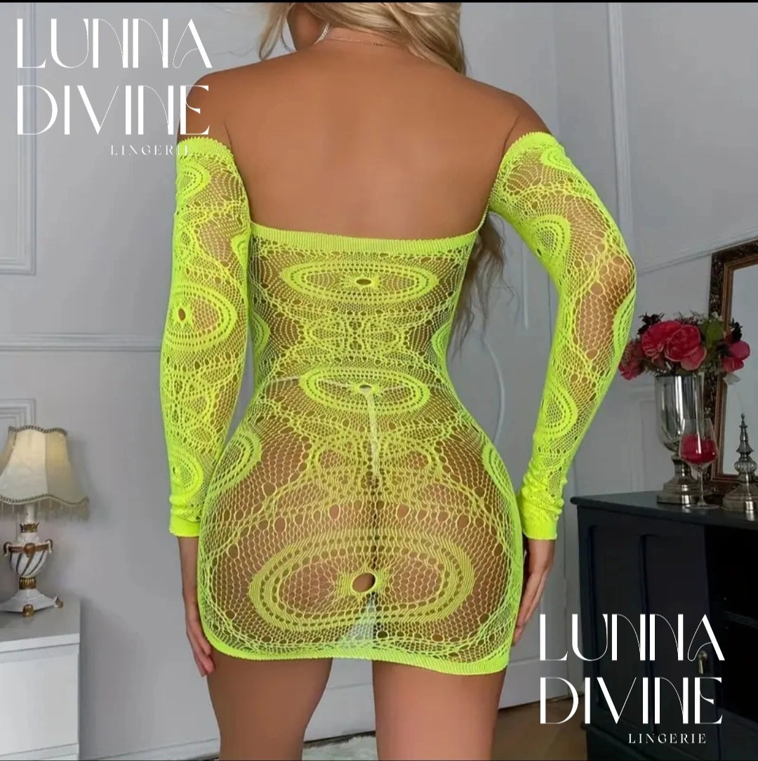 Filet en maille sexy vert flashé très élastiqué.