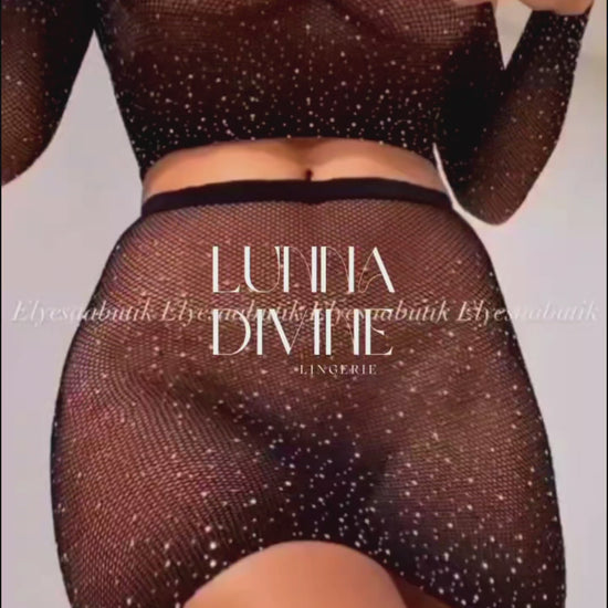 Ensemble filet perlé en maille deux pièces très élastiqué.